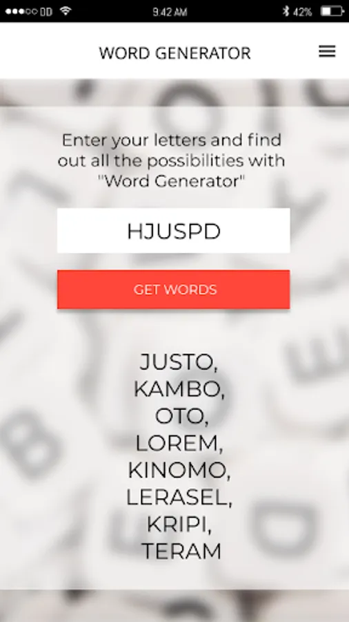 You have letters in mind and you don't know which words you can do? Are you playing the word game and want to quickly produce different words? Is it your goal to discover new words and improve your vocabulary? So our Word Generator application is just for you. Enter your letters and find out all the possibilities with "Word Generator for Games".