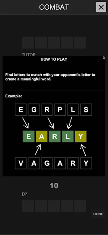 Or take on a timed challenge in Combat mode, where you will test your speed and spelling skills. Spell the word before the timer runs out, each time you find the word, the timer will reset and you will have to think fast and solve the next word. You mission is letting your opponent run out of the point.