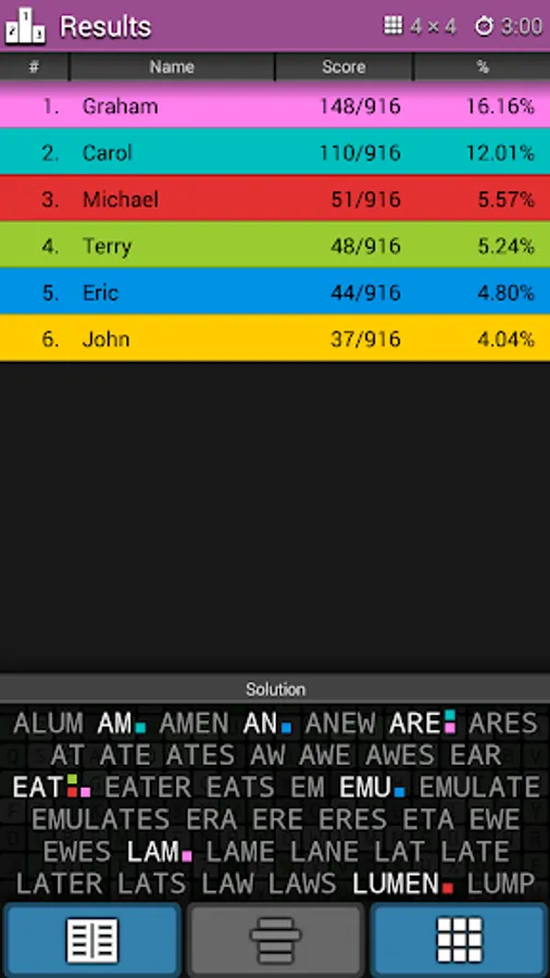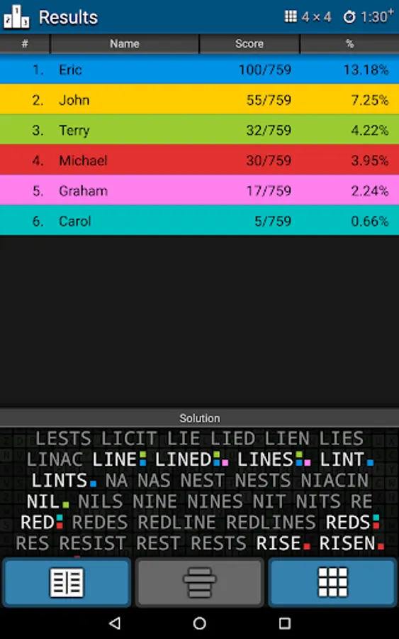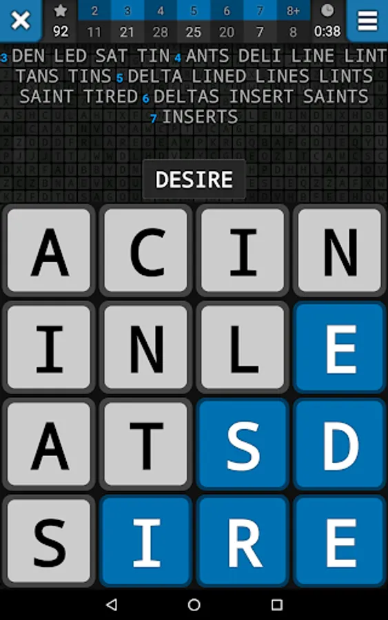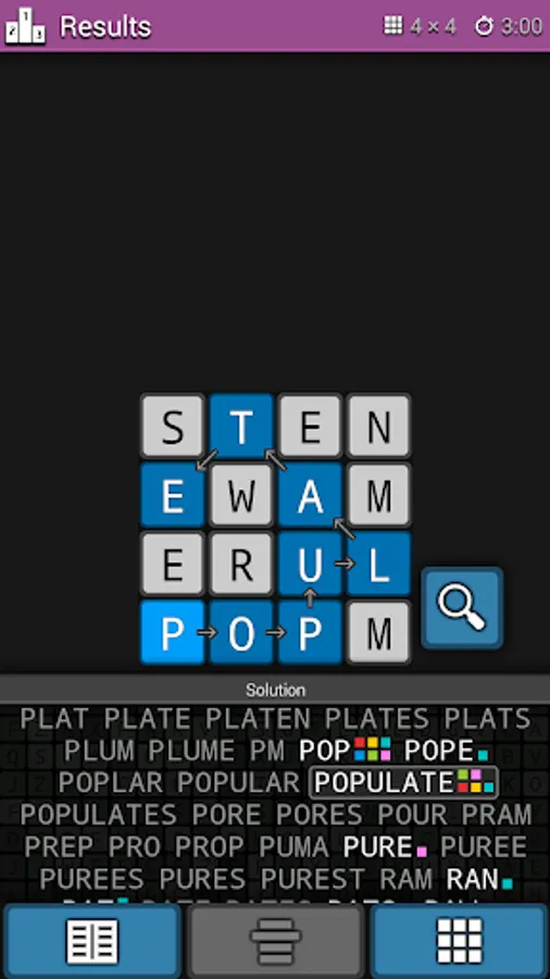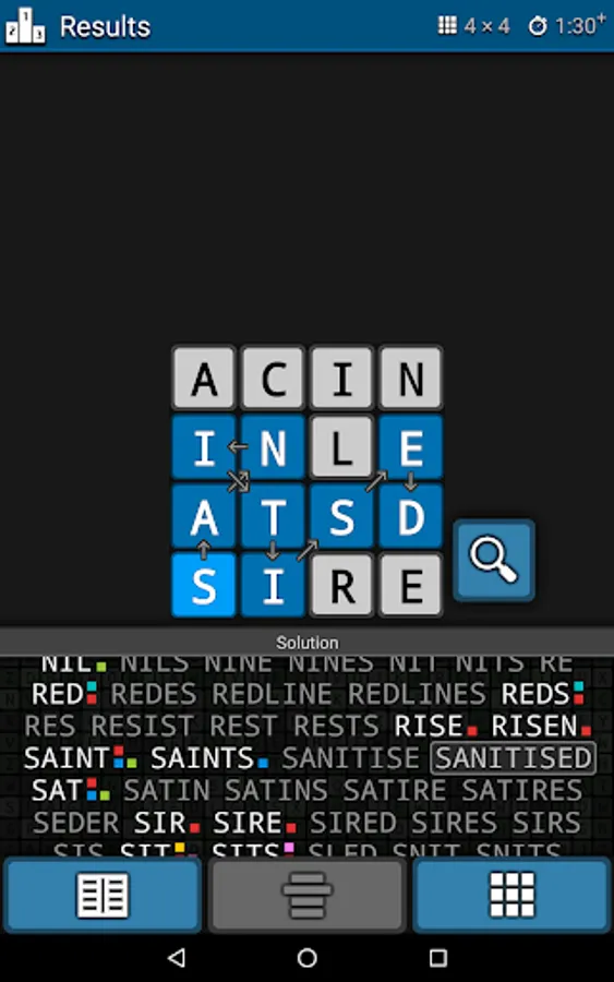 Swipe your finger horizontally, vertically or diagonally over the letters to make a word.