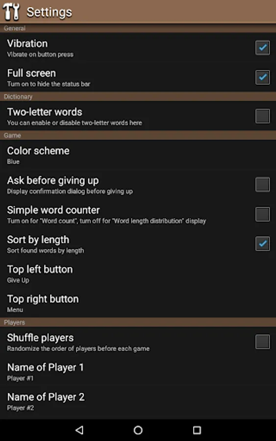 * Selectable time limit (from 0:30 to unlimited), with optional "Time Bonus" mode.