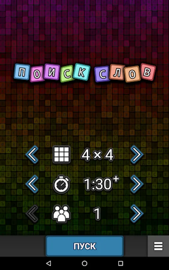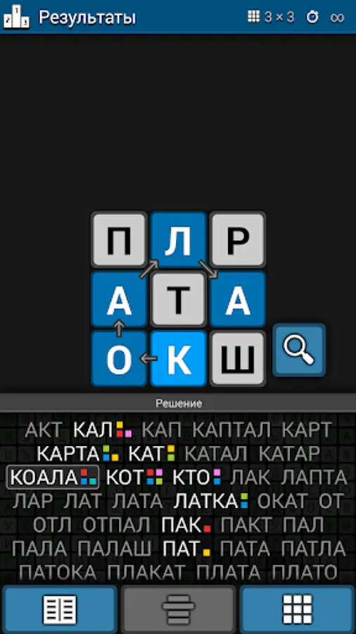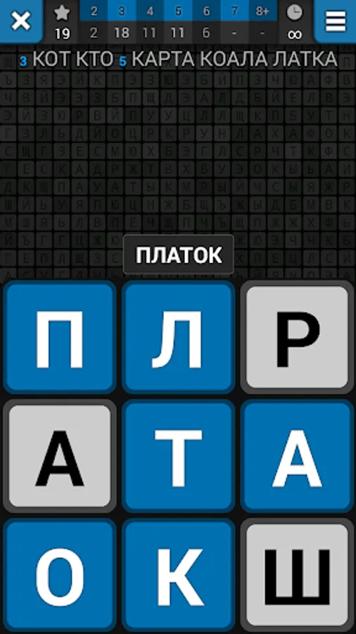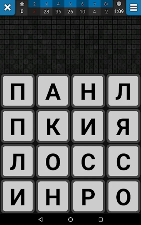 Swipe your finger horizontally, vertically or diagonally over the letters to make a word.