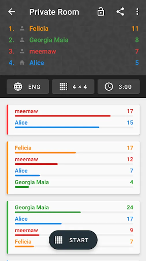 Swipe your finger horizontally, vertically or diagonally over the letters to make a word.