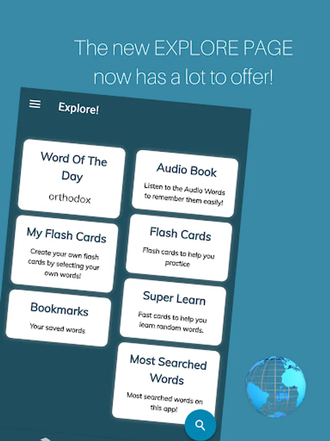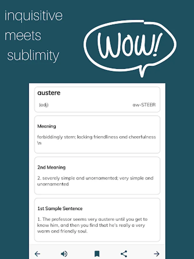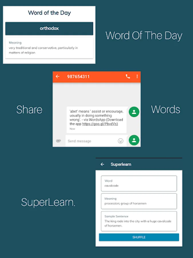 With meanings, use in sentences, root, pronunciation, synonyms, antonyms, word remembering techniques and for future will integrate an image which will help user understand and remember word.