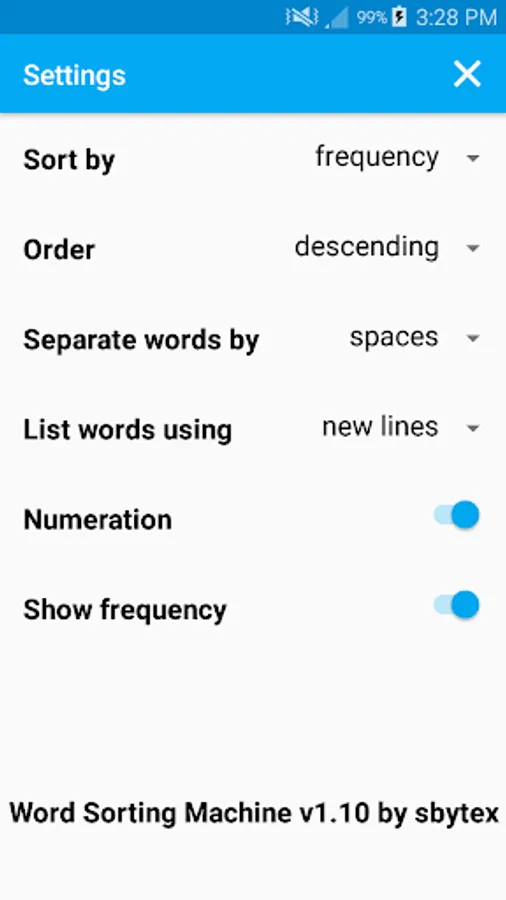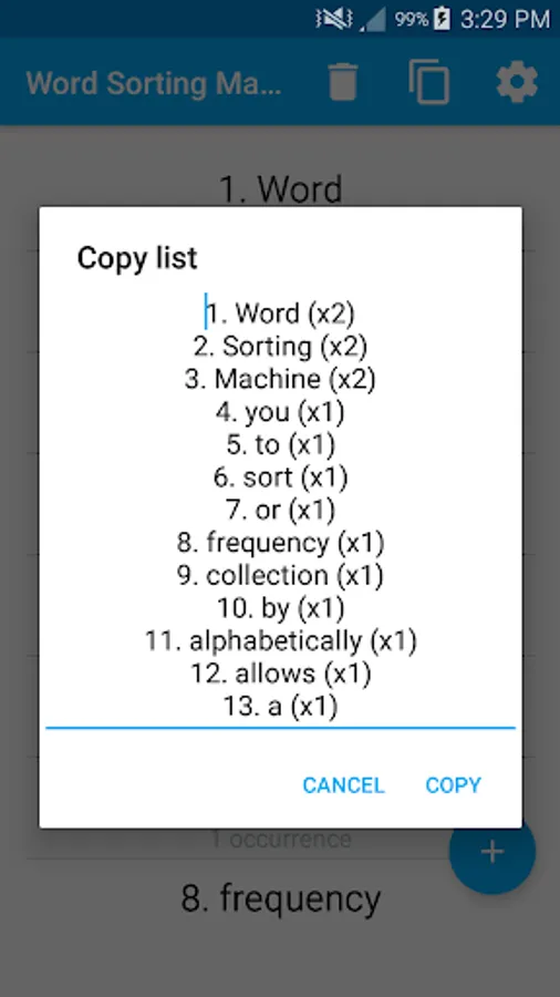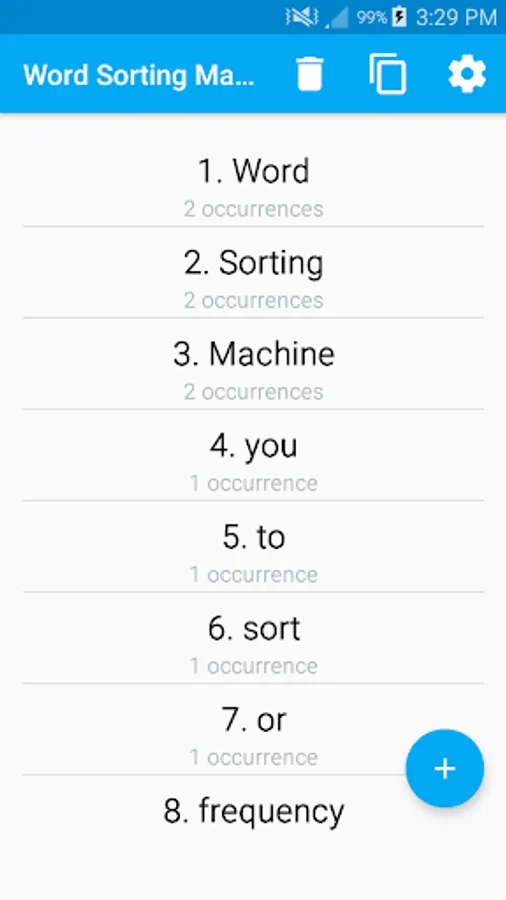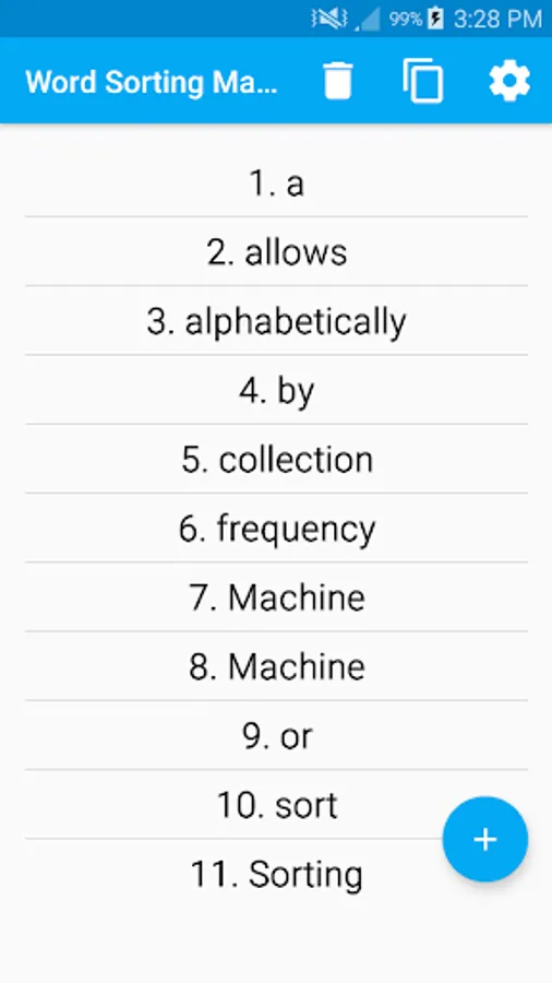 A useful tool, which puts the words of a text into alphabetical order or sorts them by their number of occurrences!