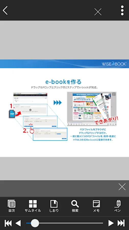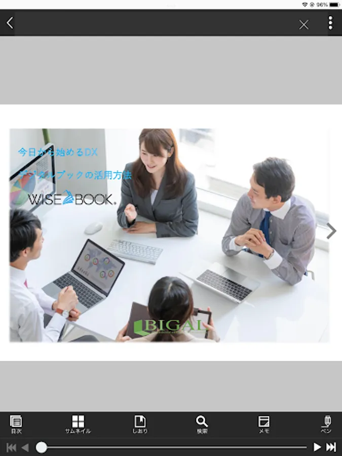 "WisebookONE" is a cloud service that allows you to easily convert company documents such as flyers, catalogs, and internal newsletters into digital books from PDF and share them.