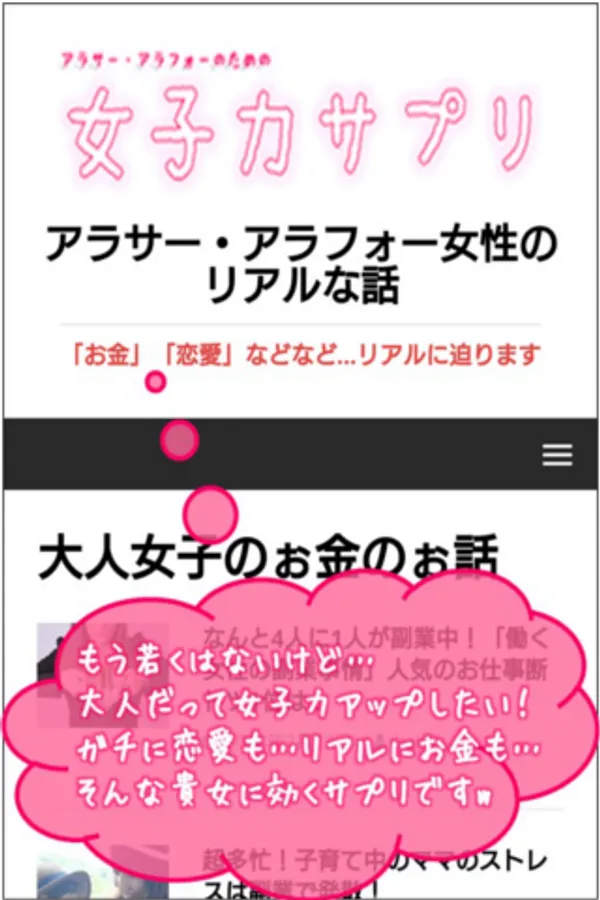 そんな悩み多き年頃の貴女に色んな視点からテーマ別でサプリを処方しています!(情報を提供しているってことです。)
