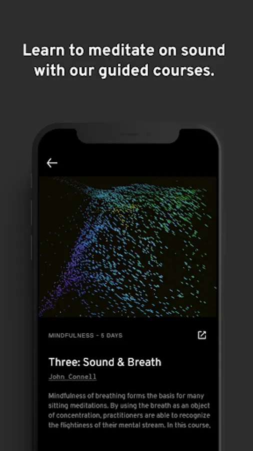 - Introductory Course: a 7-day introduction to sound meditation covering our sense of hearing from a biological and cultural perspective, and introducing simple techniques for working with sound as an object of mindfulness.