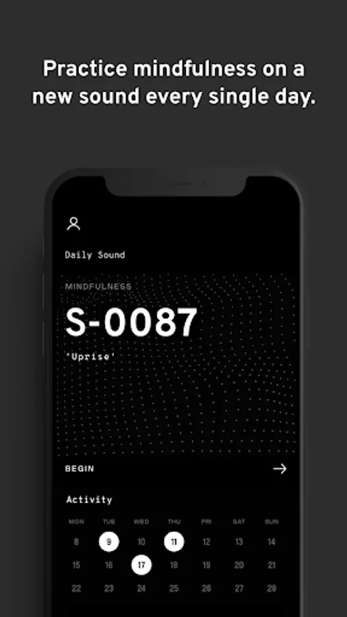 - The daily sound: a new sound meditation every day, with the ability to add time at the end of the sound to continue meditating in silence.