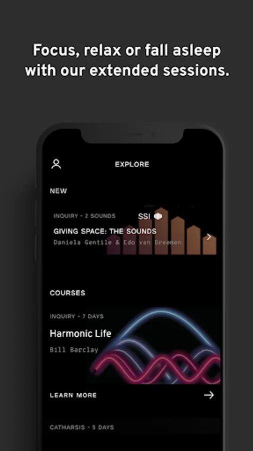 The Soundworks app includes a new daily sound every day as well as courses, extended sessions and conversations. Courses touch upon scientific, artistic or philosophical themes with a contemplative spirit. In conversations, we involve artists, scientists or thinkers to discuss meditation, science, music and health.