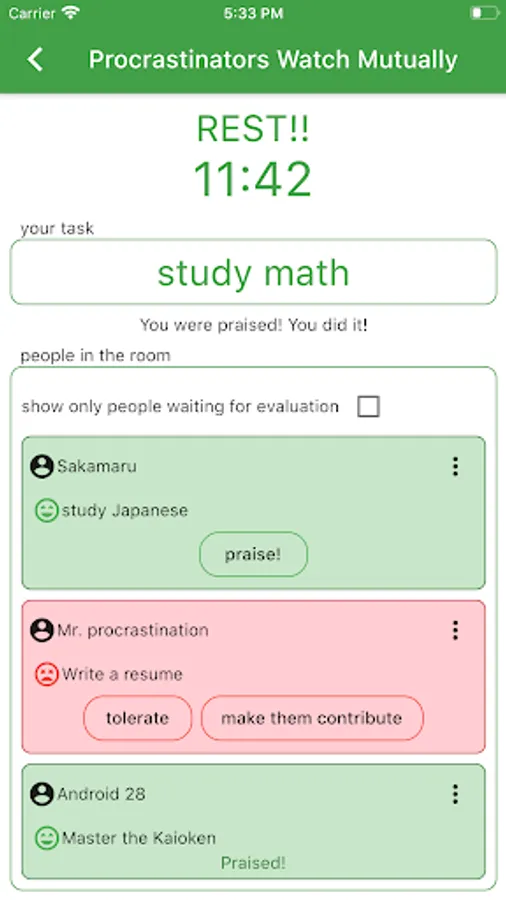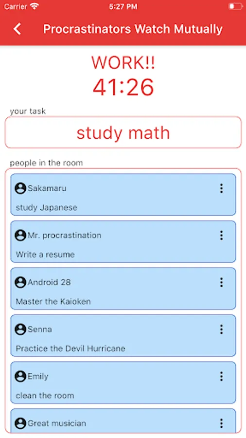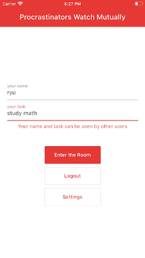 Enter your name and task and enter the room.