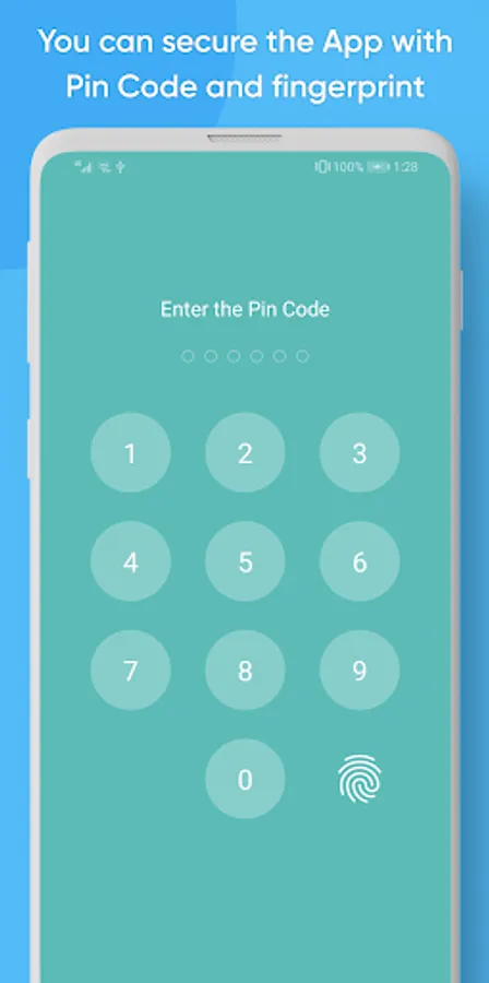• Security: You can enable PIN Code and fingerprint authentication so that you are the only one who can access the application and see your documents.