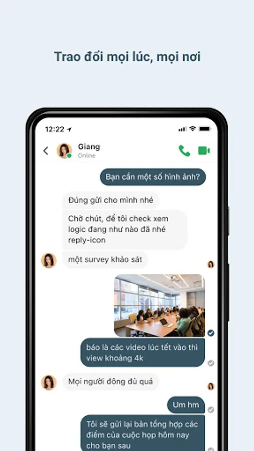 - Communicate, coordinate and exchange work with teammates, superiors anytime, anywhere with chat, call...