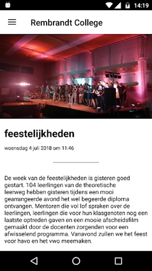 This is the new mobile news application from Rembrandt College in Veenendaal! Check this app to keep up to date with the latest news. You will also find links to useful websites here.