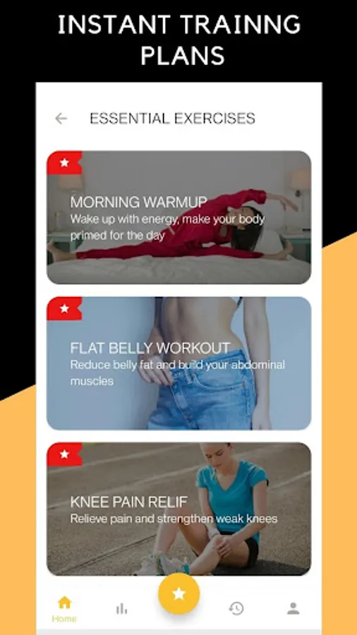 This app also has starred instant training programs like Knee pain relief, Morning warm-up & Flat Belly Workout.