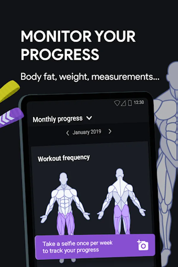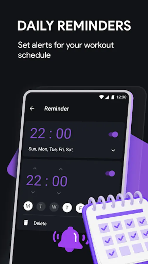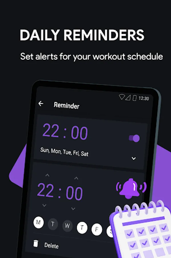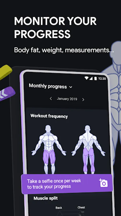 The workout calendar feature keeps all your past training neatly recorded so that you can always be up-to-date with your workout routine. You can use the exercise tracker to log the type of training, duration, and intensity, and track your progress over time. The body tracker feature allows you to track your body measurements, giving you a comprehensive view of your overall fitness and progress. It also includes a workout reminder feature that helps you stay on top of your daily training routine and remind you not to skip your training. The workout interval timer is a helpful tool that allows you to count down each exercise.
