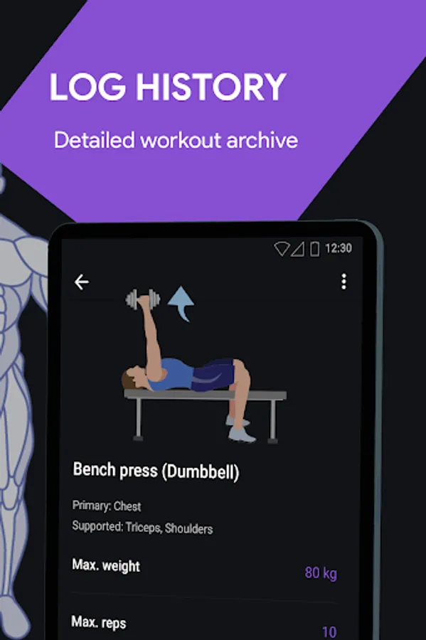 π History Log - Record and log your daily workouts, including type of exercise, duration, and intensity. Log the details including the exercises performed, sets, reps, and weight used.