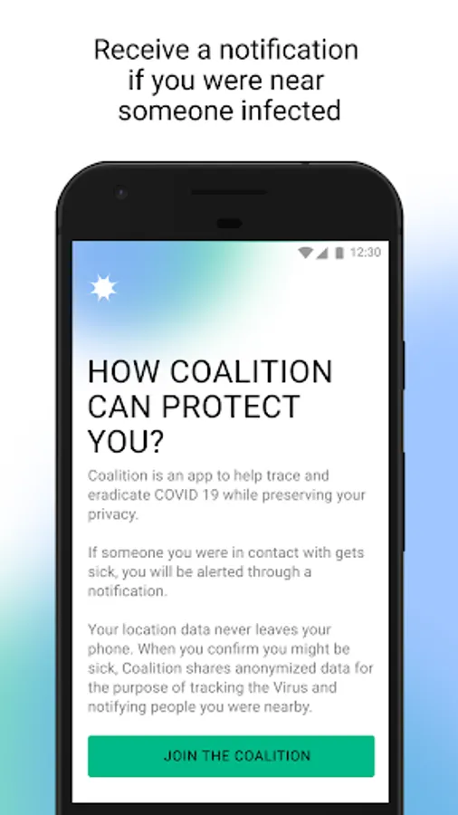 The Coalition App alerts you if you have crossed paths or spent time with another user showing symptoms, or those who have tested positive for the virus.