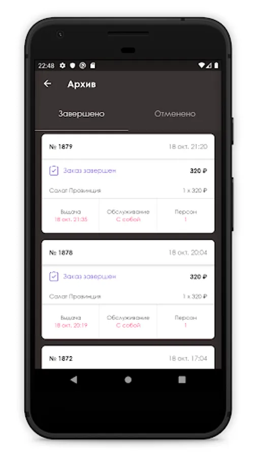 Self-processing and payment of orders without the help of waiters. In the restaurant and in advance.