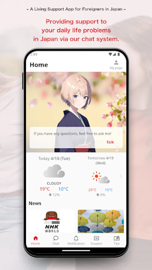 With our chat system we provide support to foreigners who are going to live, and are already living in Japan to cope with troubles they may encounter.