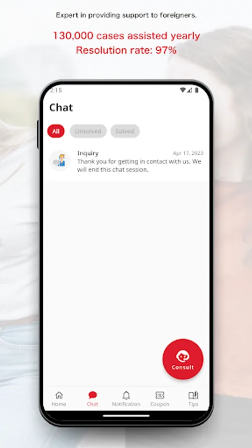 We have supported many foreigners with their everyday life in Japan; about 130,000 cases per year! With 97% of the cases being solved, we offer a high quality support system.