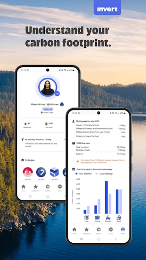 * Daily footprint logging tracks and displays the real-time impact of carbon-conscious lifestyle changes