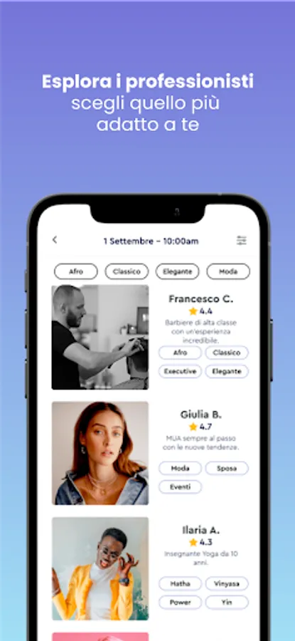 - Search for a treatment and find hairdressers, barbers, beauticians and much more around you, by activating geolocation;