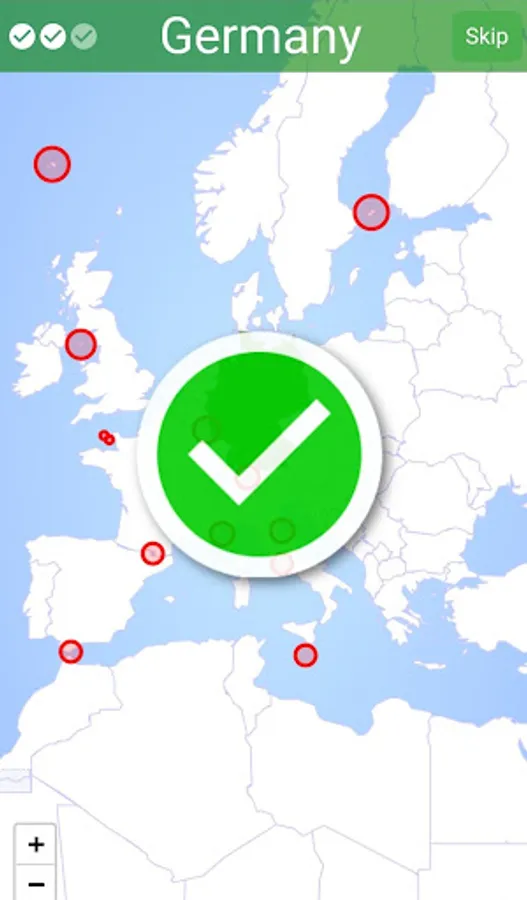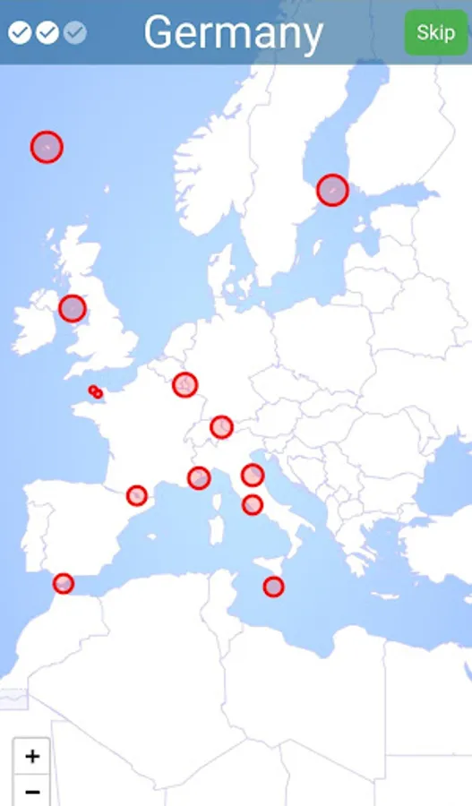 In the "Countries" mode, you will be given a country name on the globe and you will be asked to find that country in an interactive empty world map. But there is more... You should learn all the countries in each continent to clear a level. So it is also 7 continents map: European countries, Asian Countries, African Countries, American countries are grouped together so that you can learn them chunk by chunk. It helps you to learn world map with country names. If you have difficulty to clear any level, you should go to "Explore" mode, and practice world atlas for that continent.