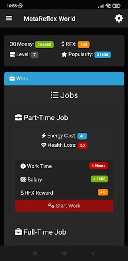 Choose your avatar and customize it to your liking, buy clothes, equipments and food. Go to work, the gym and school to increase your avatar skills.
