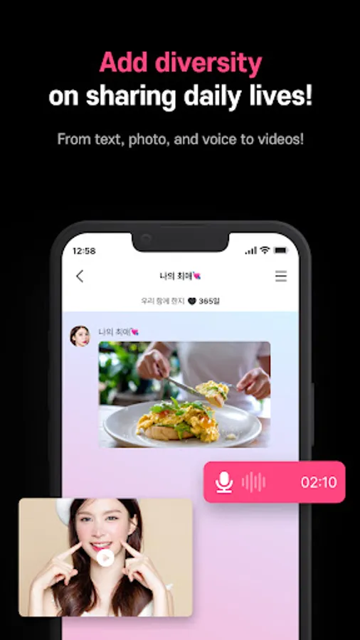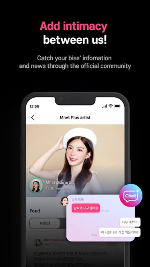 Meet your bias' daily life in a much more diverse way through text, photo, voice and video messages.