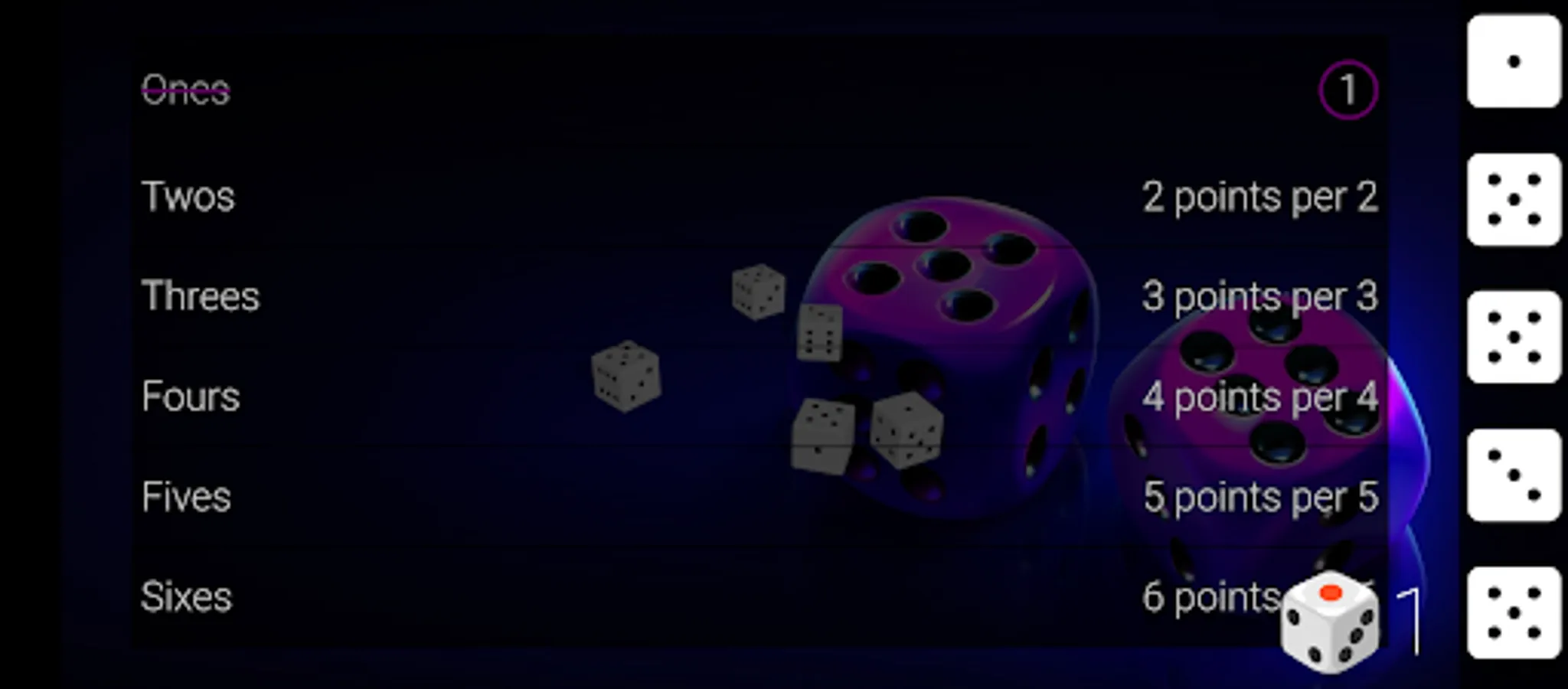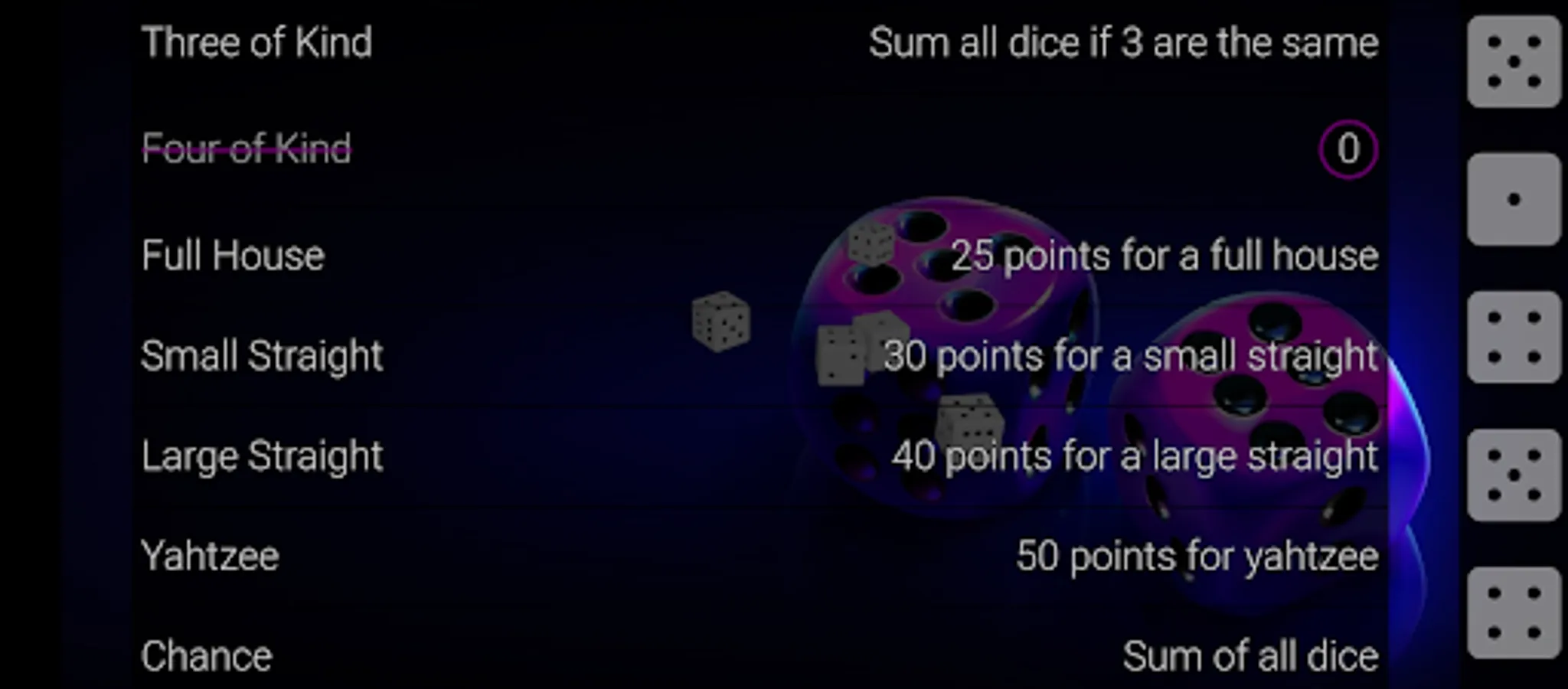 Yahtzee game also known as Yatzee, Dice Roller, Yacht.