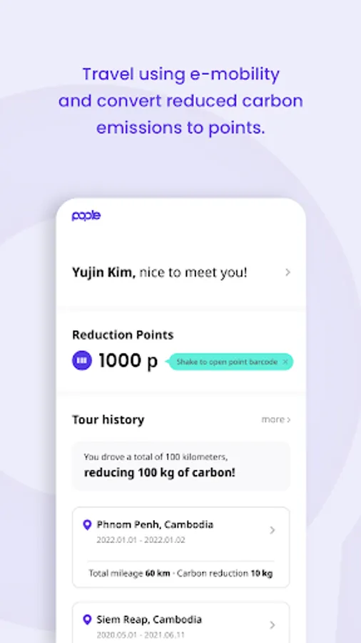 - ‘Carbon reduction points’ obtained through travel When traveling, we convert the greenhouse gas reduced by using e-mobility into points. Points can be freely used at POPLE STATION CAFE.