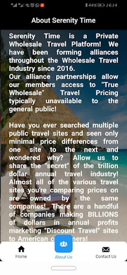 Serenity Time is a Private Wholesale Travel Platform! We have been forming alliances throughout the Wholesale Travel Industry since 2016. Our alliance partnerships allow our members access to "True Wholesale" Travel Pricing typically unavailable to the general public!