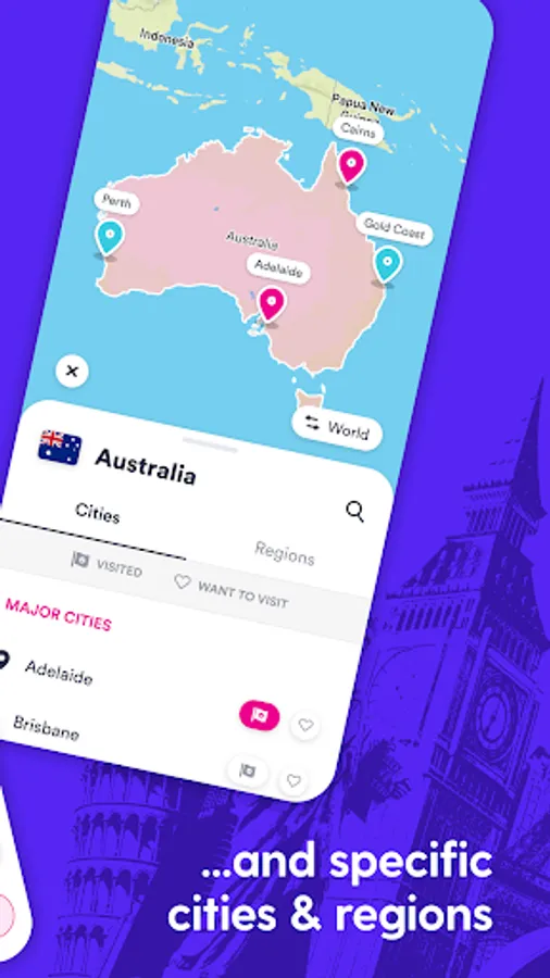Plan and track your travel experiences by marking countries you want to visit in the future