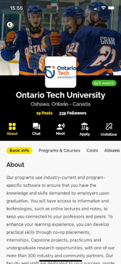 Choose which institutions you want to follow and discover more about. View videos, campus tours, photos, program brochures and catalogues, scholarship info AND receive live updates from the unis you follow directly on the home feed.