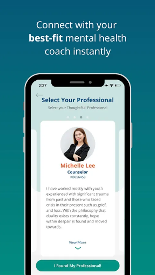 All therapists on ThoughtFullChat are certified mental health professionals (counsellors, psychologists, or psychiatrists) who have completed the required academic and practicum hours to obtain their relevant qualifications and credentials in their respective locations. We have certified coaches in 16 locations who speak over 11 languages and dialects, and cover more than 30 different clinical specialities. We understand that finding the best therapist is sometimes like trying to find THE ONE, you have the option to switch your mental health therapist at any moment. Your progress will be securely and seamlessly transferred to your new therapist.