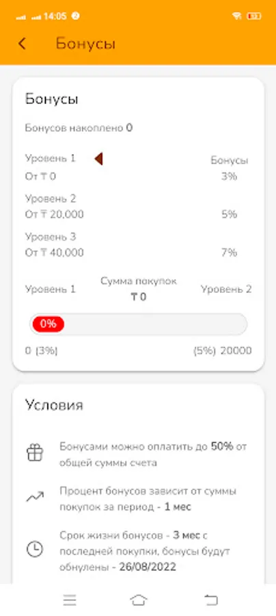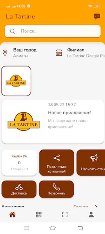 New application La Tartine in which you can accumulate cashback from purchases and place orders