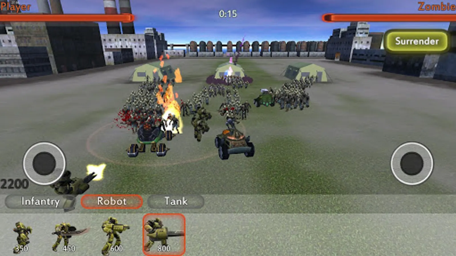 Virus T infected almost all humanity and they became zombies. Save the world in this real time RTS war game.As a survivor and a young commander, you must lead your army in the war, and win.You will battle all around the world.Your duty is to destroy their bases, headquarters and kill all zombies in all cities and countries.