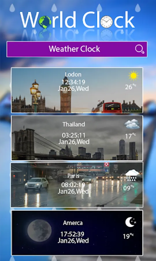World clock widget and weather app for Android is a world clock app that provides weather and world clock and a widget with which you can view weather & world clock in homescreen. Cool user interface, intuitive graphics specially designed for you. Get the most beautiful World Clock Widget and weather app for android now 100% FREE!