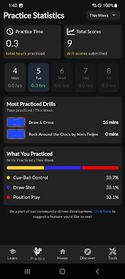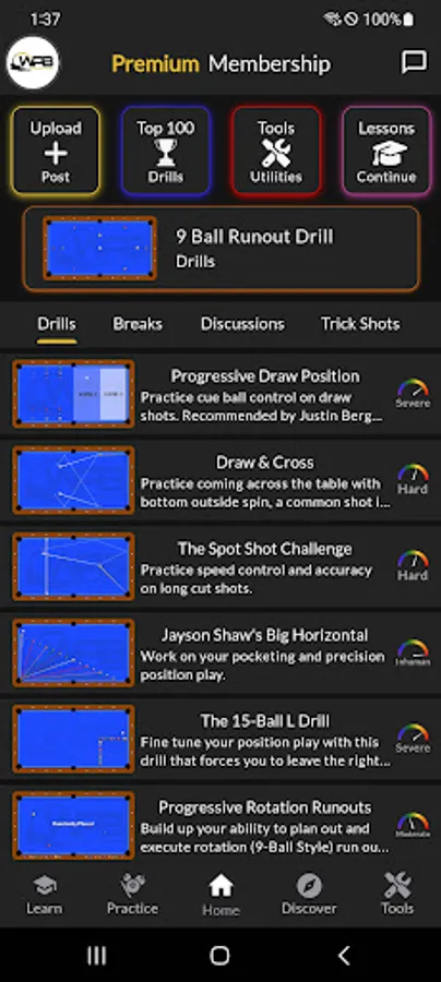 Access over 100 drills that are designed to help you improve specific skills. No need to mindlessly throw balls on the table and shoot them in no particular order. Drills give you a specific layout, with directions, but it won't feel like you are practicing alone as you compete to get onto the top of the weekly leaderboard.