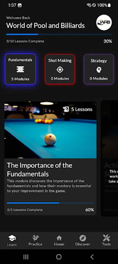 Go through a comprehensive course that teaches you everything you need to know. Learn everything from how to hold a cue to complex kicking systems.