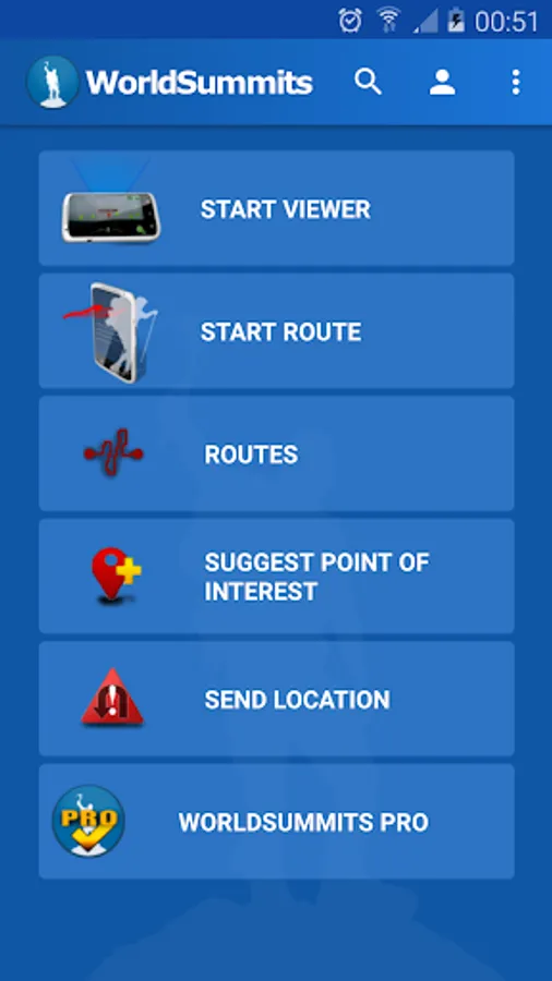 * To enjoy full functionality WorldSummits PRO must be activated by paying via Google Market, once the activation is available even reinstalling the application.