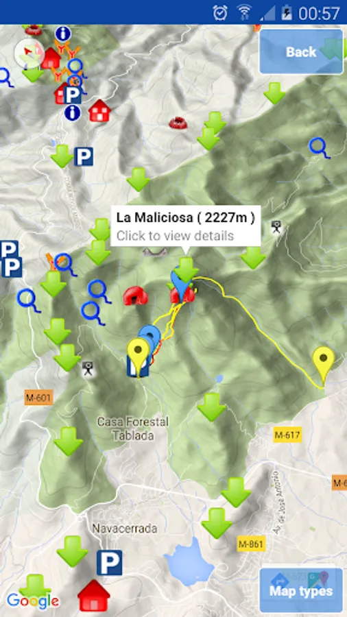 Not only the names of the peaks are shown, now if you click on them will appear their routes, photographs, ascents, weather forecast, and more.