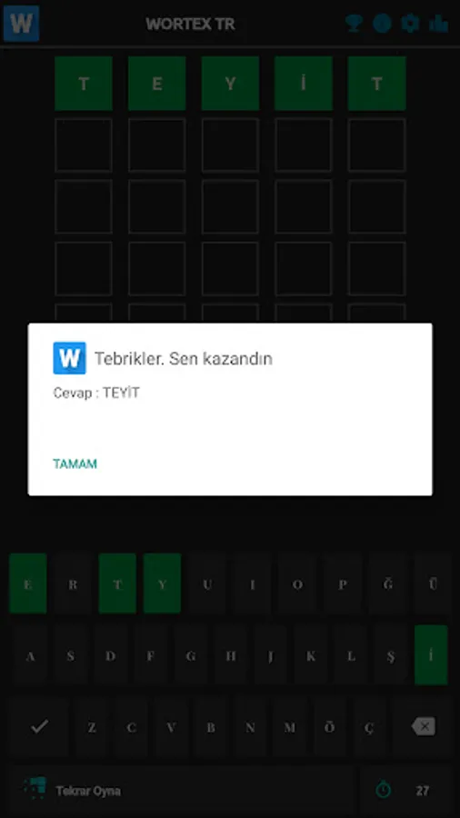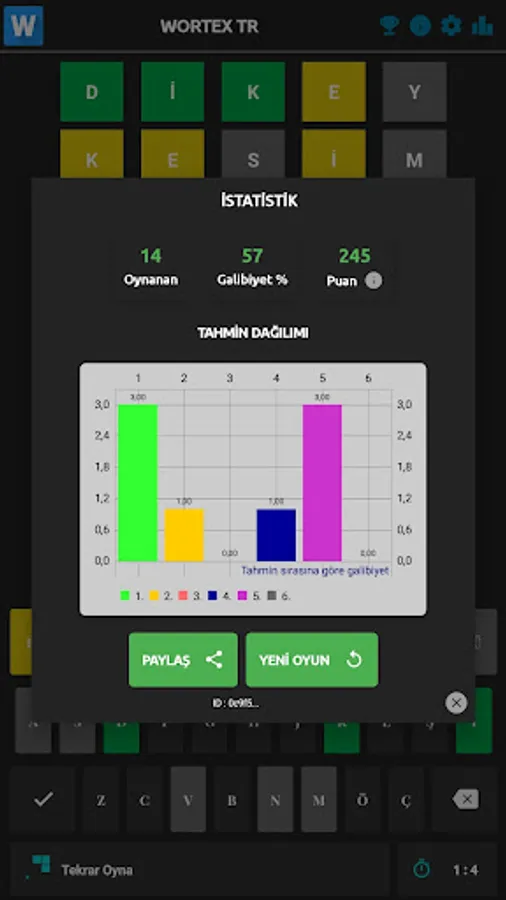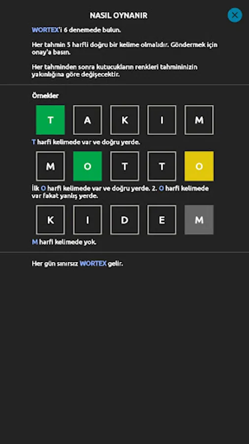 6 tahmin hakkınız ile 5 harfli kelimeyi ilk bulan kişi oyunu kazanır. Evrensel puanlama sıralamasına girenlerin arasında ilk sırada yer almak ister misiniz. Hadi biraz hafıza egzersizi yapın. Zor ve Kolay seçenekleri ile hafızanızı zorlayın.