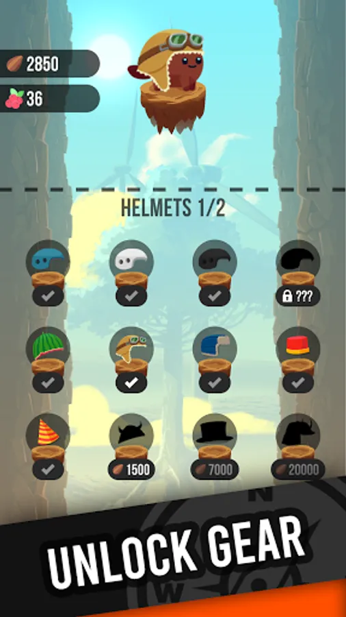 Of course, the beaver is majestic itself, but have you ever dreamed about making it a little more… fancy or cute? Don't say another word! Just collect some seeds during the climb and exchange them for amazing gear. Who said that you don't need to be fashionable in an offline arcade? How about a valiant viking-beaver? Or a charming witch-baver? Maybe an honorable samurai-beaver? Everything is possible! Just have fun!