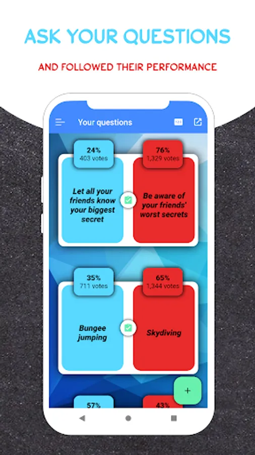 3- Answer the truth, dynamically the choices will be enlarged, making you see clearly what the other players voted for and the total number of votes collected for that question.
