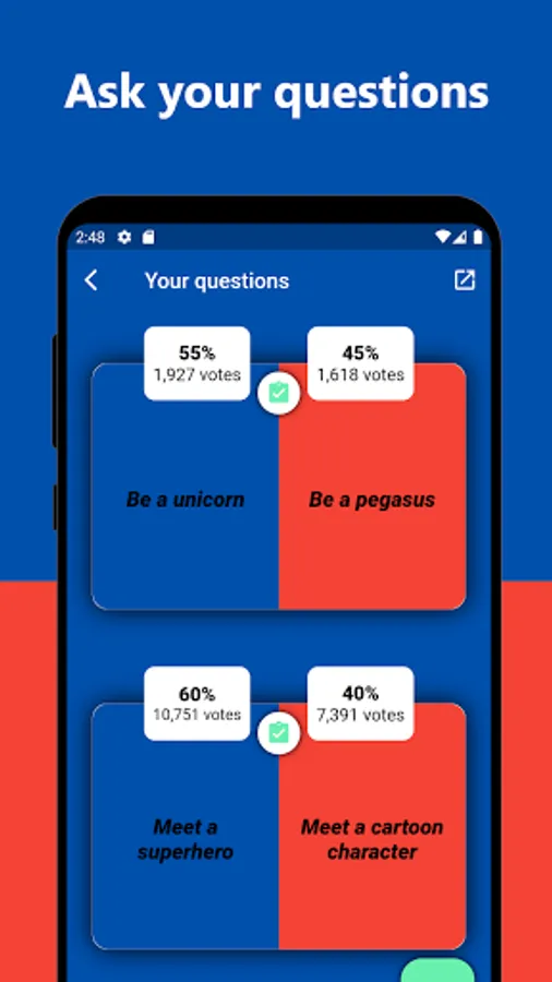You can also add your own would you rather questions and follow their progress.