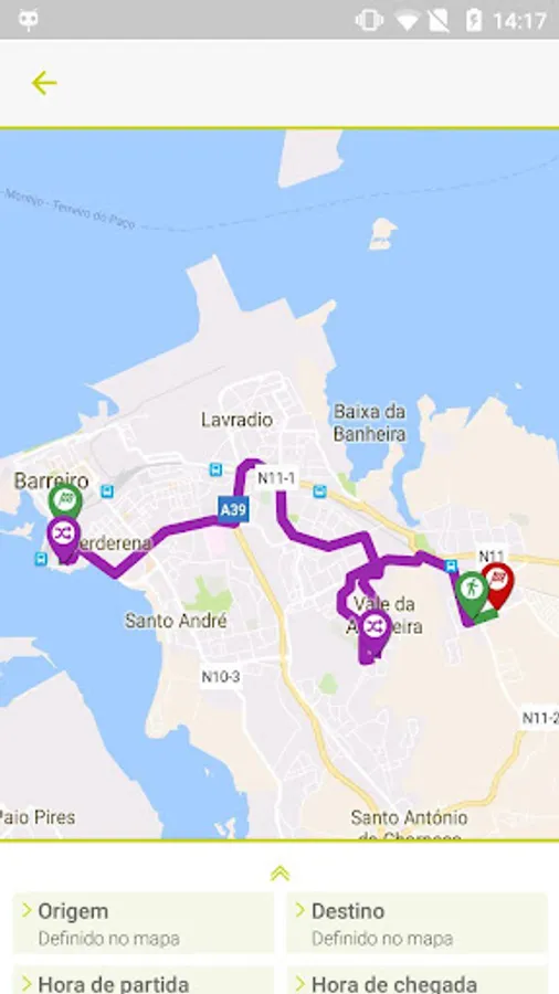 - Stops: check the map of stops and see the routes that pass through them and the estimated time for each bus;