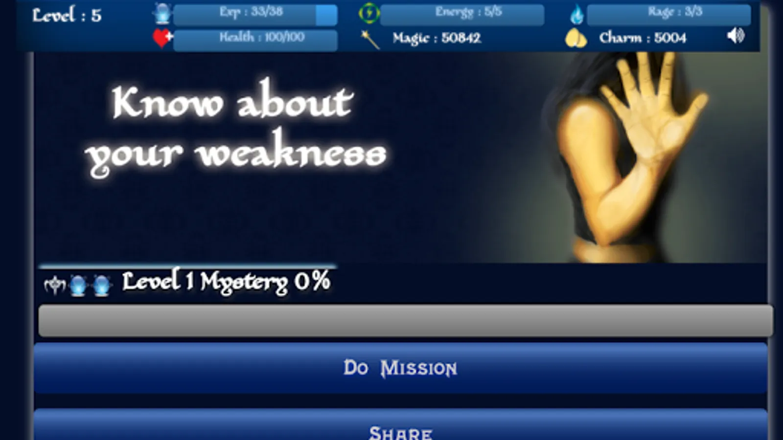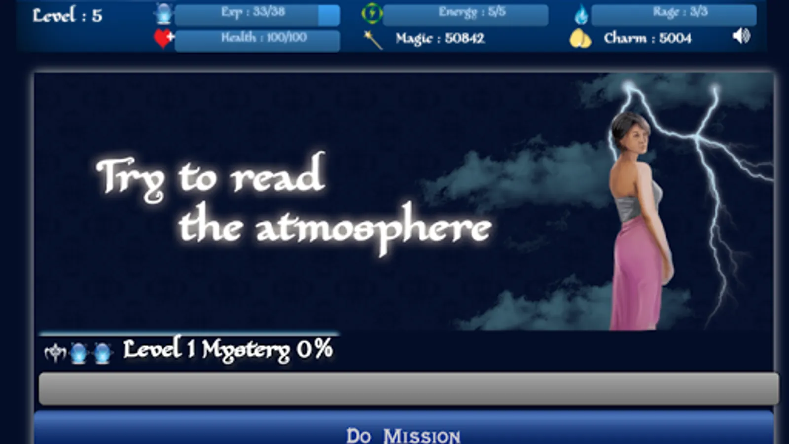 Complete missions to gather experiences and level up. After achieving a certain amount of experiences, you will be rewarded with magic, charms and skill points. But doing missions requires energy. Keep your eyes on your energy bar to know when you need to boost up your energy.