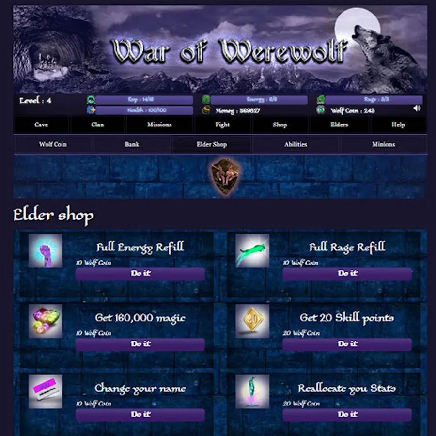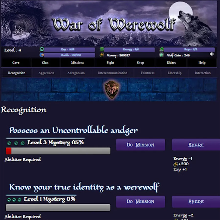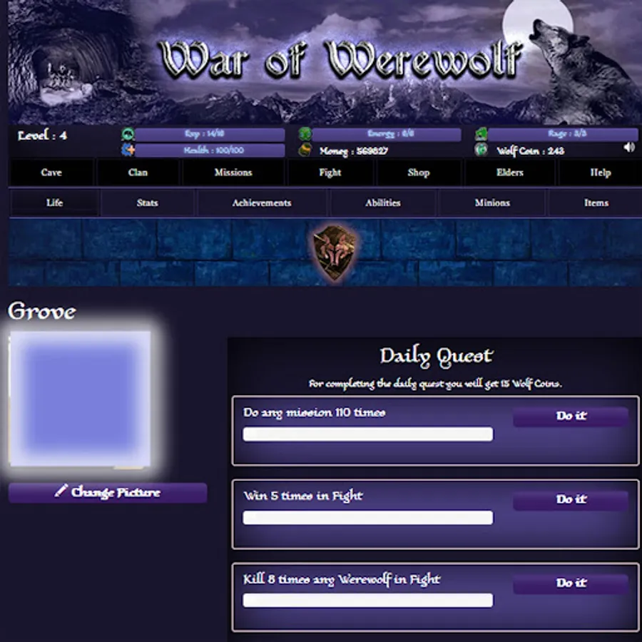 The grove will give you the complete information about your Werewolf life. Here you can also be updated with your magic flows and Elder’s information.