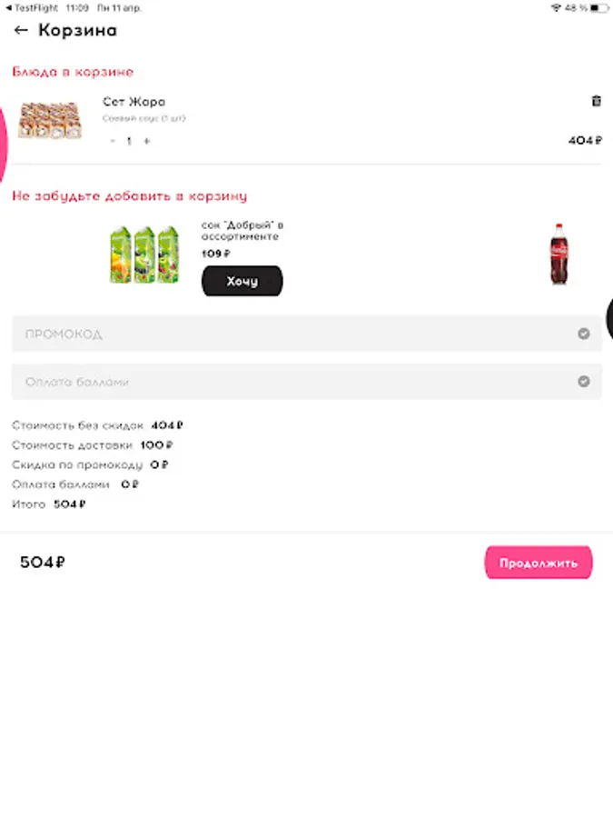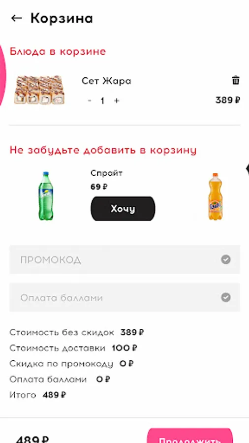 A gift for downloading a mobile application is provided with a minimum order amount of 799 rubles, the minimum order amount for receiving a gift may vary depending on the selected city.